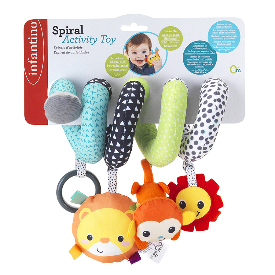 Spirala pentru activitati B Kids se infasoara cu usurinta in jurul manerelor scaunelor auto, carucioarelor, saltelelor de joaca sau a patuturilor, pentru a distra bebelusii nu doar acasa, ci si la plimbare. Este confectionata din plus moale texturat si material imprimat si include trei mini-jucarii din plus moale. Aceasta jucarie a fost special conceputa pentru a incuraja dezvoltarea timpurie a abilitatilor copiilor si are incorporate diferite texturi si sunete pentru a-i incuraja pe cei mici sa se distreze folosindu-si simturile si sa invete sa exploreze lumea din jurul lor. Jucaria ii ajuta pe cei mici sa invete sa isi foloseasca mainile pentru a efectua miscari precise, miscari care ajuta la dezvoltarea abilitatilor motorii fine. Caracteristici:- A se spala numai de mana. A se usca in mod natural;- Indepartati toate elementele utilizate pentru ambalare inainte de a da jucaria unui copil. Dimensiuni articol ambalat: 25 x 25 x 11 cmVarsta recomandata: 0 luni +