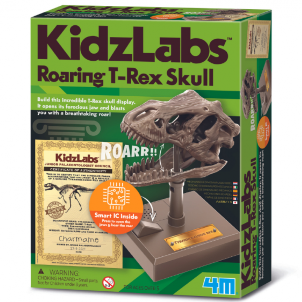 Jucarie interactiva 4M, Craniu de T-Rex cu sunete, KidzLabs