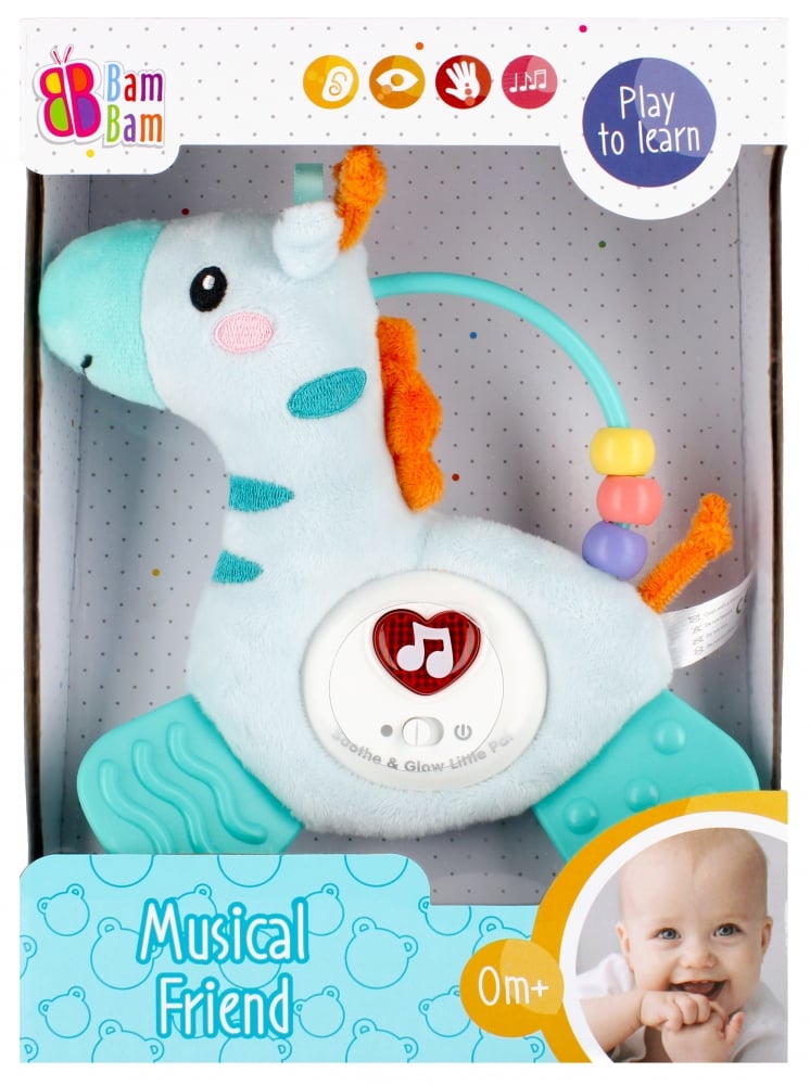 Girafa interactiva de la BamBam este o jucarie care indeplineste pana la 4 functii – agatatoare, mascota, dispozitiv de dentitie si cutie muzicala, pentru fiecare etapa a dezvoltarii unui copil. Texturile si materialele diverse, inclusiv elemente mobile si butoanele care clipesc, redarea melodiilor, ofera o serie de stimuli, activand dezvoltarea copilului, de la simturile manuale si motorii, pana la imaginatie. Pe semicercul de pe spatele zebrei sunt insirate 4 cercuri colorate, care la scuturare scot un sunet delicat, zdranganit. In plus, setul include un cerc, datorita caruia poti agata jucaria pe cadrul patului. Nota! Produsul functioneaza cu 3x baterii de tip AG13(incluse in pachet). Dimensiuni produs in ambalaj: 18 x 8 x 25 cmGreutate produs: 0.361 kgVarsta recomandata: 0 luni +