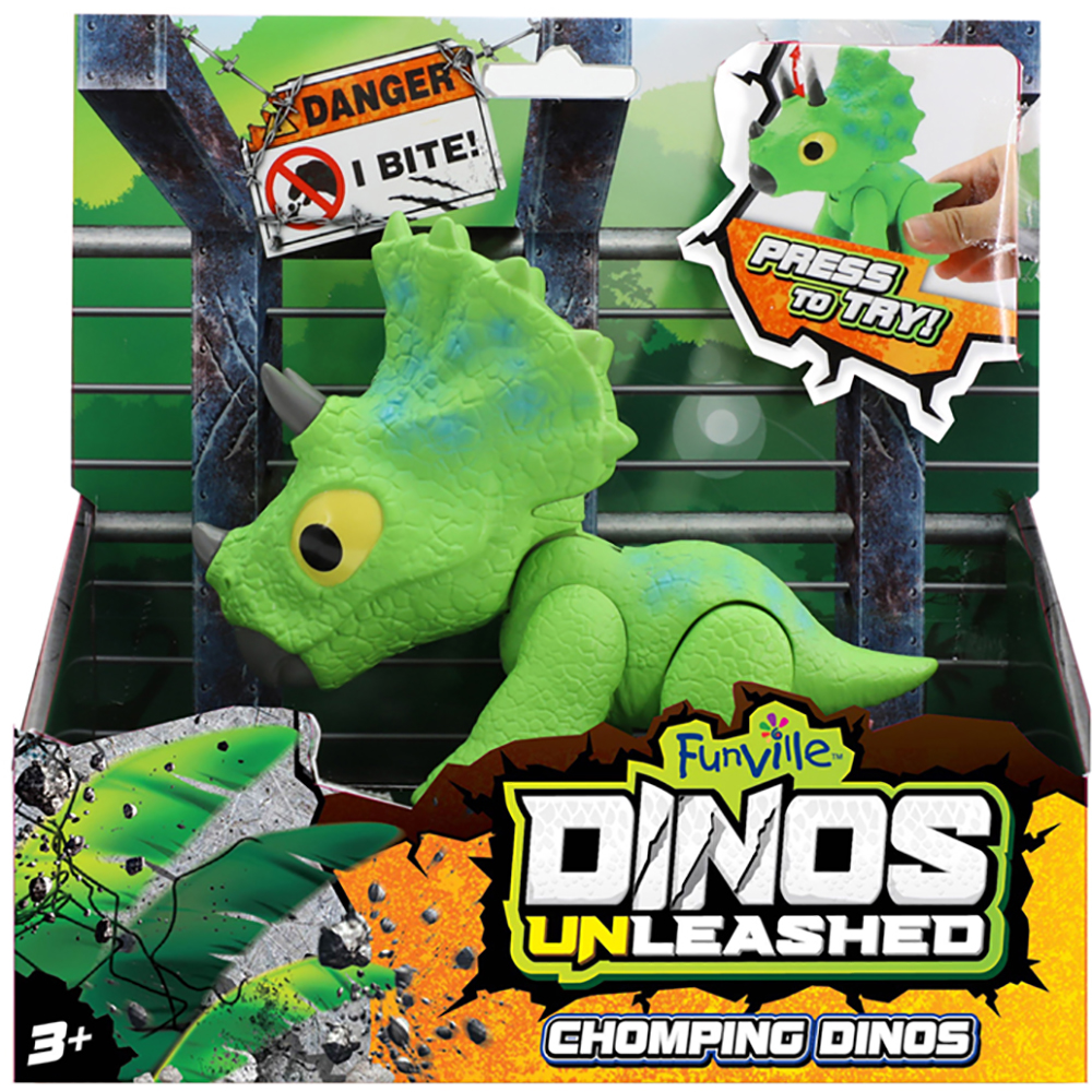 Acesti dinozauri Dinos Unleashed va vor lumina ziua! Strangeti-le picioarele si urmariti cum se indeparteaza. Dimensiuni produs in ambalaj: 16.5 x 5.7 x 16.8 cmVarsta recomandata: 3 ani + Atentie! Contraindicat copiilor mai mici de 3 ani. Jucaria poate contine piese mici, care se pot inghiti sau inhala, existand pericolul de sufocare.