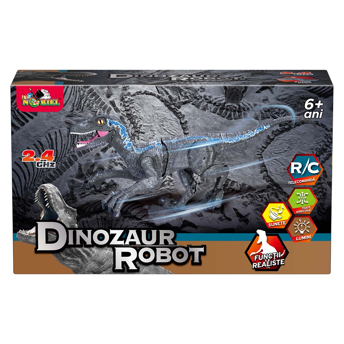 Ia-ti inima in dinti si fa o incursiune temerara in vremurile salbatice in care marii pradatori stapaneau planeta! Dinozaurul robot cu design super realist, lumini si sunete si functie Demo este controlat de la distanta prin radiocomanda de 2.4GHz si se misca in toate directiile: inainte, inapoi, la stanga si la dreapta. Baterii- Robotul functioneaza cu 1 acumulator de 3,7V 1200 mAh (incorporat) care se incarca prin cablu USB (inclus). – Radiocomanda functioneaza cu 2 baterii tip AA de 1,5V (nu sunt incluse). Nota!- Robotul vine partial asamblat! Dimensiuni produs in ambalaj: 41 x 27 x 25 cmVarsta recomandata: 6 ani + Atentie! Contraindicat copiilor mai mici de 3 ani. Jucaria poate contine piese mici, care se pot inghiti sau inhala, existand pericolul de sufocare.