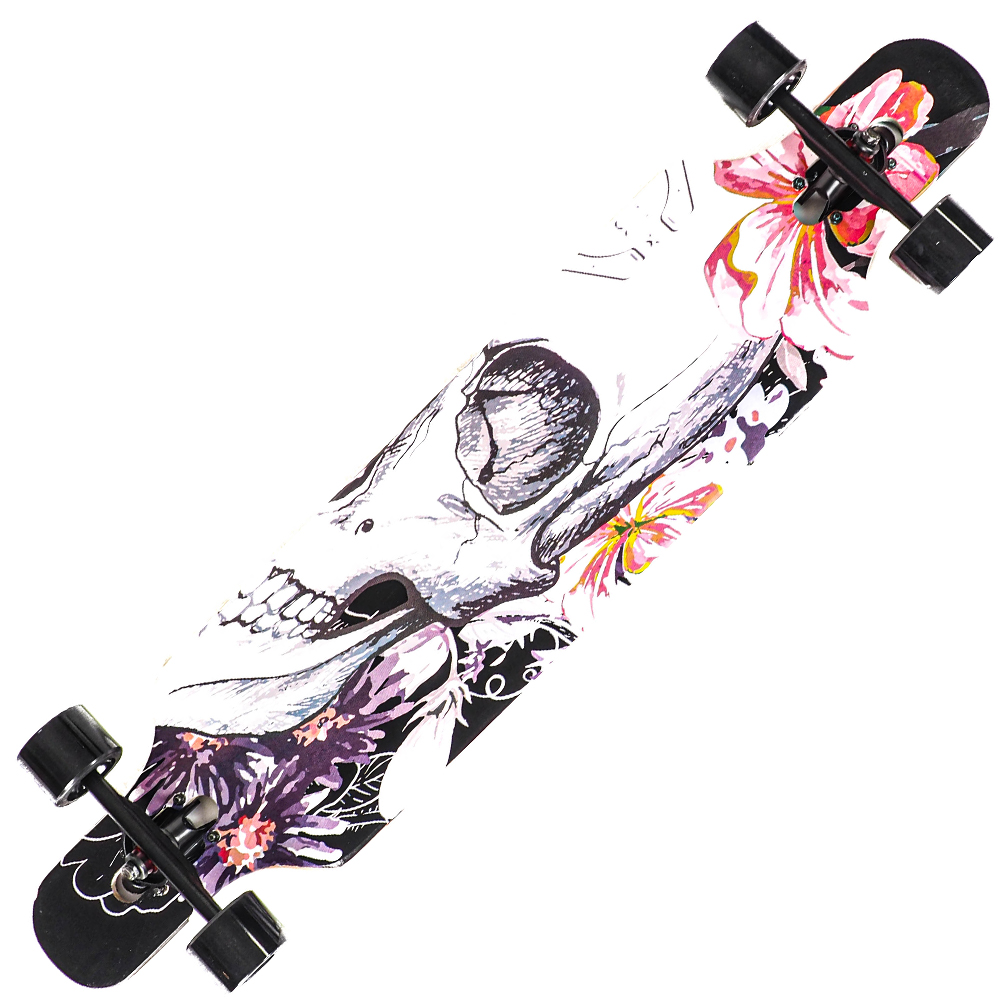 Longboard Action One, ABEC-7 PU, Aluminiu, 100 kg, 105.5 x 22 cm, Multicolor Flower Skull