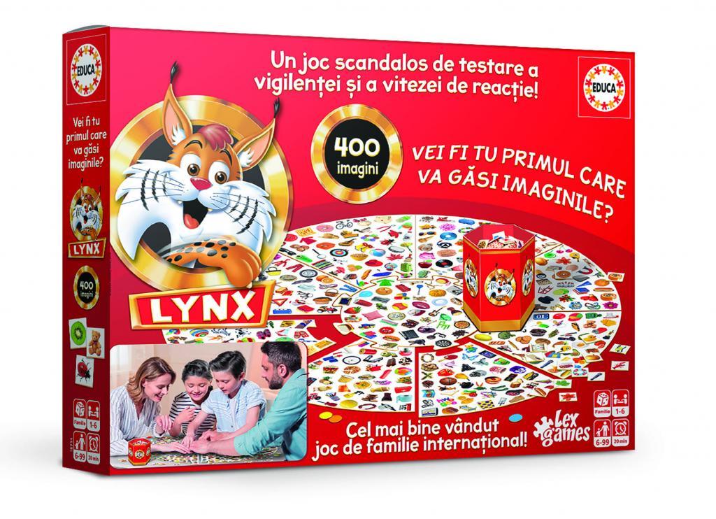 In jocul pentru toata familia, incepand cu 6 ani, LYNX, trebuie sa fii primul care-si gaseste imaginile de pe masa de joc; sa strangi cele mai multe carti si sa castigi. La joc se poate utiliza si o aplicatie gratuita companion, pe mobile (Lynx – Educa), pentru Android si iOS, pentru a face jocul si mai interactiv.Tradus de Lex Games, LYNX este pentru 1-6 jucatori, are o durata de joc de 20 de minute si include o plansa de joc, 401 piese cu imagini, 18 colorate, o cutie si bineinteles, instructiuni.