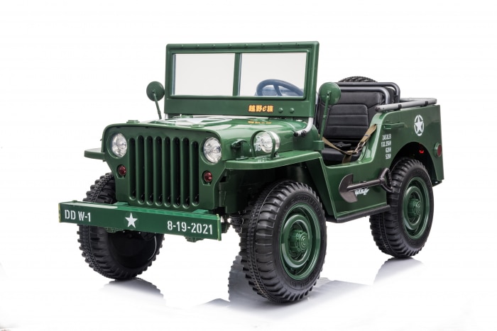 Masinuta electrica pentru 3 copii Jeep USA ARMY 4X4 180W 12V 14Ah, culoare verde