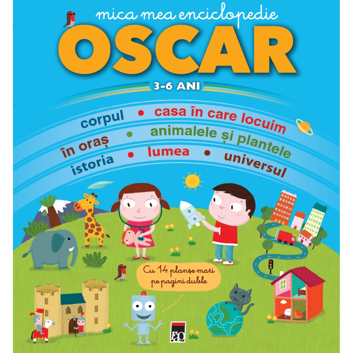 Raspunde intrebarilor, hraneste pasiunile: Enciclopedia Oscar 3-6 ani este indragita de copii fiindca, prezentand subiecte preferate de ei, le ofera explicatii clare, insotite de ilustratii adaptate varstei lor! Mica mea Enciclopedie Oscar cuprinde 7 parti: – corpul – casa in care locuim – in oras – animalele si plantele – istoria – lumea – universul Numar pagini: 192Dimensiuni: 23,5 x 21,5 cmTip coperta: necartonataAn aparitie: 2020