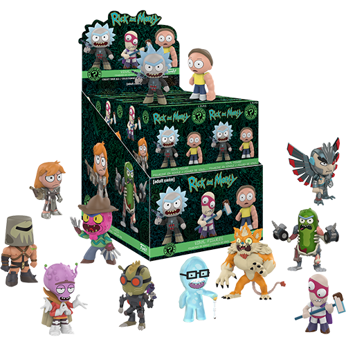 Miniaturi stilizate din universul desenelor Rick and Morty, care vin aleator sigilate în cutii „misterioase”.