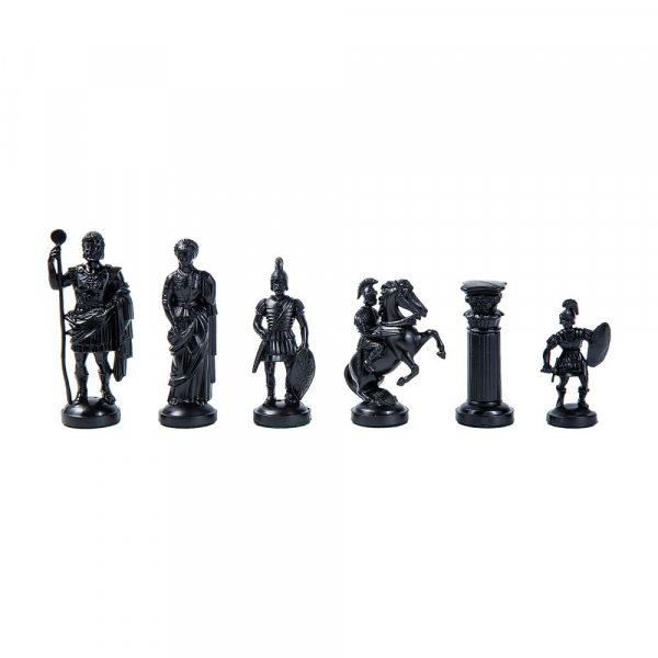 Piese sah tematice din plastic cu designul inspirat din perioada Romei antice. Culoarea pieselor: alb-negru
