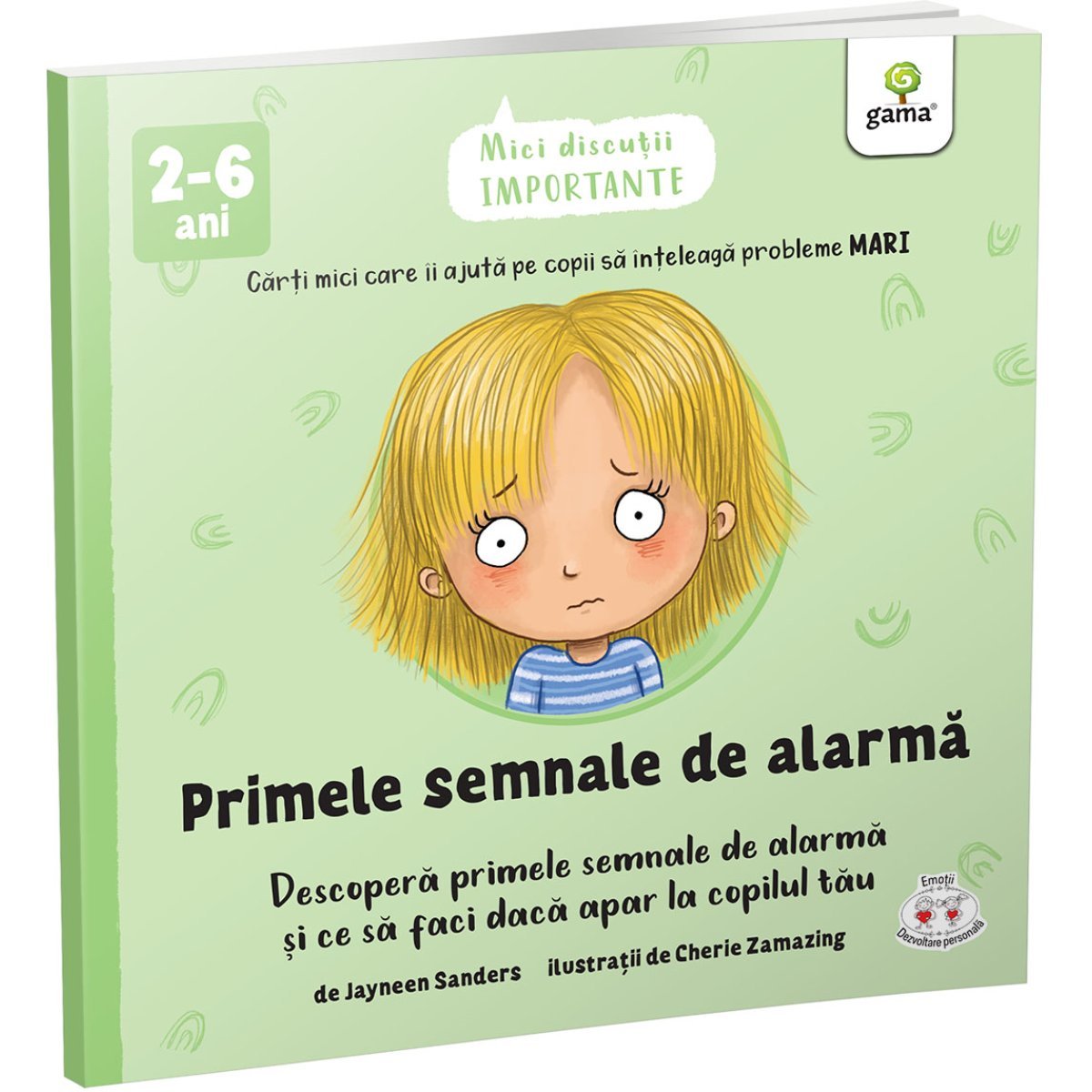 Aceasta carte descrie care sunt primele semnale de alarma la copii si cum le pot gestiona rapid. Atat adultii, cat si copiii primesc semnale de alarma cand nu se simt in siguranta sau cand sunt ingrijorati, speriati si/sau entuziasmati. Este esential sa-i ajutam pe copii sa inteleaga reactiile naturale ale corpului cand nu se simt in siguranta, iar daca ii vom pregati astfel incat sa stie exact ce sa faca, vor deveni mai increzatori in fortele proprii. Colectia „Mici discutii importante” a fost creata pentru a-i ajuta pe parinti, pe educatori si pe alte persoane care au copii in grija sa poarte discutii deschise si incurajatoare cu copiii. Sugestiile de intrebari de la finalul cartilor sunt de un real folos pentru adaptarea celor mai importante, dar dificile subiecte la limbajul si varsta copiilor. Cartile sunt recomandate pentru copii intre 2 si 6 ani. Numar pagini: 24Dimensiuni: 15 x 15Tip coperta: necartonataAn aparitie: 2022Autor: Jayneen Sanders