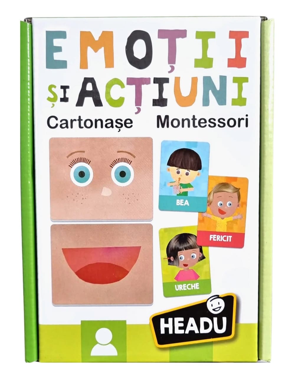 „Proiectam jocuri, jucarii, carti si aplicatii distractive, de inalta calitate, pentru a-i invata pe copii abilitati esentiale folosind o metoda de predare inovatoare.” – Fondatorii Headu Headu – CARTI EMOTII SI ACTIUNI IN ROMANA Jucati mai multe jocuri educative cu acest set de 36 de carti: recunoasteti emotiile, expresiile faciale si diferitele actiuni prin observarea imaginilor de pe cartonase. Distrati-va amestecandu-le pentru a crea cele mai amuzante fete! Produsul dezvolta sensibilitatea tactila, imbunatateste dexteritatea manuala, gandirea, capacitatea de concentrare si recunoasterea formelor. HEADU stimuleaza mintea copiilor prin joc si cu ajutorul dispozitivelor educationale amuzante, organizate intr-un meniu personalizat de competente, pentru a se desfasura intr-un mod spontan si neobligatoriu, cu o capacitate de invatare permanenta. Setul include: 6 puzzle-uri mari tactile. Gama Montessori promoveaza o crestere riguroasa, auto-motivata pentru copii si adolescenti in toate domeniile dezvoltarii lor – cognitive, emotionale, sociale si fizice. De ce sa alegi HEADU? Revolutia digitala, cresterea tot mai mare de informatii, explozia potentialului stiintei si a tehnologiei si accelerarea globalizarii, fac ca in prezent sa fie esential sa avem noi moduri de gandire si noi cai de invatare: de la copii mici si pana la adulti, la scoala, la locul de munca si in viata. Misiunea brandului HEADU stimuleaza mintea copiilor prin joc si cu ajutorul dispozitivelor educationale amuzante, organizate intr-un meniu personalizat de competente, pentru a se desfasura intr-un mod spontan si neobligatoriu, cu o capacitate de invatare permanenta.