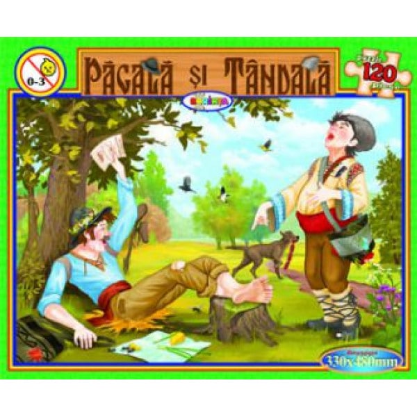Descopera un puzzle superb ilustrat cu amuzantele personaje Pacala si Tandala. Asamblati puzzle-ul si cititi fragmentul din „Pacala si Tandala” de pe spatele cutiei pentru a descoperi povestea celor doi. AVERTISMENT: Contraindicat copiilor mai mici de 3 ani. Pericol de sufocare datorita componentelor mici. Se recomanda utilizarea produsului de catre copii mai mari de 3 ani.