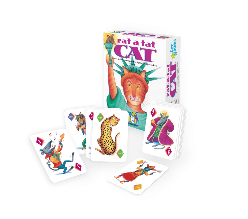 Scapa de soarceci si mizeaza pe pisici! In Rat-a-Tat Cat, mai putin e intotdeauna mai bine si-ti doresti sa termini cu cel mai mic scor. Iti amintesti numerele de pe cartile clorlalti jucatori? Poti pastra o fata neutra si sa-ti dai seama daca ceilalti sunt tristi sau incantati de cartile lor? Fii atent la numere si actioneaza la timp si distreaza-te cu pisicile bune si soarecii rai in Rat-a-Tat Cat.Jocul a fost republicat in 2002 de Amigo sub numele Biberbande si jocul e dedicat celor cu varste de peste 6 ani. Jucatorii au cate 4 carti in mana si scopul e ca suma cifrelor de pe ele sa fie mai mica decat a celorlalti jucatori. Sunt 66 de carti in pachet, fiecare numerotate de la 0 la 9, de trei tipuri (9 „Schimba”, 7 „Spioneaza” si 5 „Trage 2 carti”). Patru carti sunt puse cu fata in jos pentru a nu cunoaste nimeni ce suma ascund. Apoi 4 carti sunt aranjate in linie si fiecare jucator ar putea sa verifice doua dintre carti. La fiecare tura se trage o carte din pachet sau din sirul de carti oferind posibilitatea la mai multe actiuni. Daca este o carte cu numar, poate fi inlocuita cu una dintre cele cu fata in jos. Daca e o carte cu actiune se executa comanda acesteia.