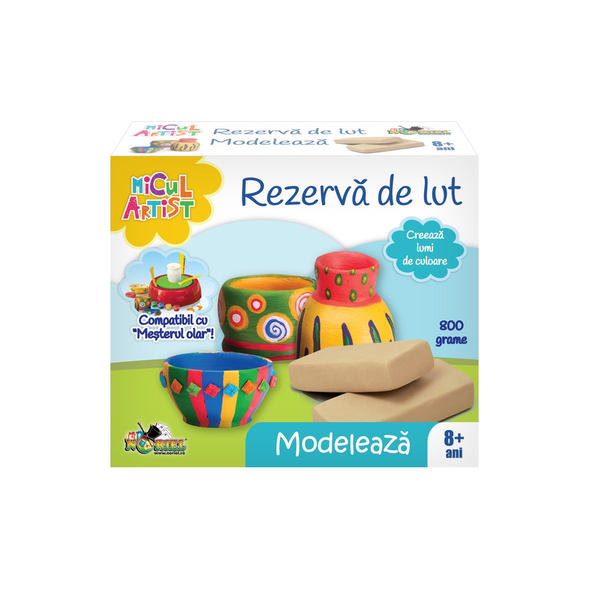 Creeaza, modeleaza si decoreaza vase folosind lut care se usuca! Descopera arta olaritului! Modeleaza un vas, picteaza-ti creatia si asteapta sa se intareasca. Gata, ai un vas doar al tau, care sigur va atrage privirile tuturor. Produsul dezvolta capacitatile creative, simtul artistic si indemanarea copilului. Produsul este compatibil numai cu setul Micul Artist – Mesterul Olar. Continut set: 2 x pachetele de lut 400g Recomandare varsta: 4 ani + Avertisment: Nerecomandat copiilor cu varsta sub 3 ani. Contine piese mici care pot fi inghitite.Nu lasati pungi din plastic la indemana copiilor mici – pericol de asfixiere.