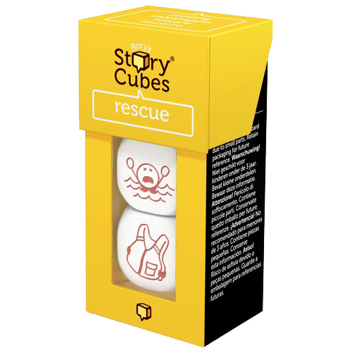 Această extensie pentru jocul de bază Rory’s Story Cubes conține 3 zaruri noi cu 18 de imagini cu acțiuni tematice, despre salvare. Poate fi jucată împreuna cu jocul original sau ca joc de sine stătător.