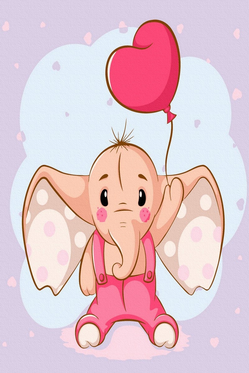 Set Acuarello, Pictura pe numere, Elefantul roz, cu rama din lemn, pensule si culori acrilice