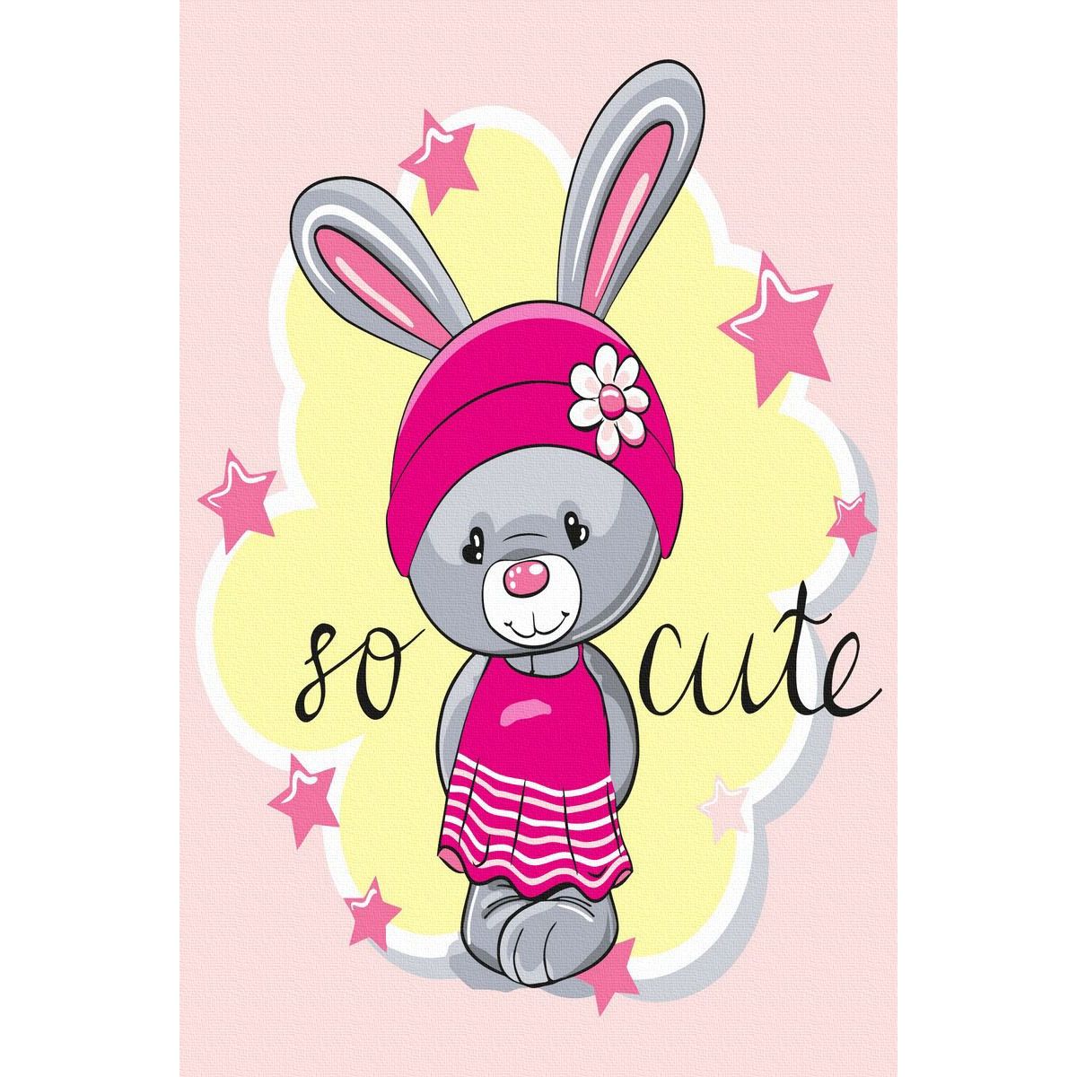 Set Acuarello, Pictura pe numere, Iepurasul Cute, cu rama din lemn, pensule si culori acrilice