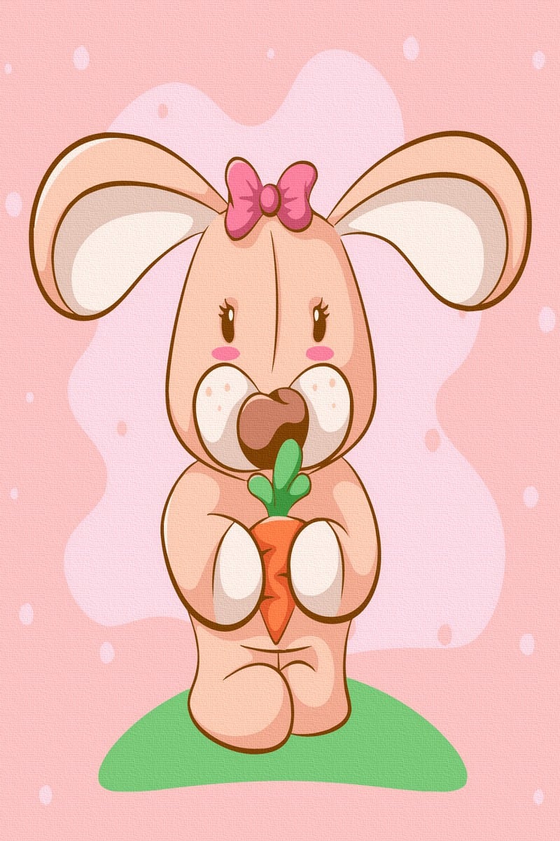 Set Acuarello, Pictura pe numere, Iepurasul roz, cu rama din lemn, pensule si culori acrilice