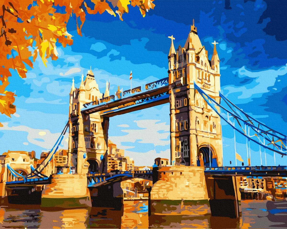 Set Acuarello, Pictura pe numere, London Bridge, cu rama din lemn, pensule si culori acrilice