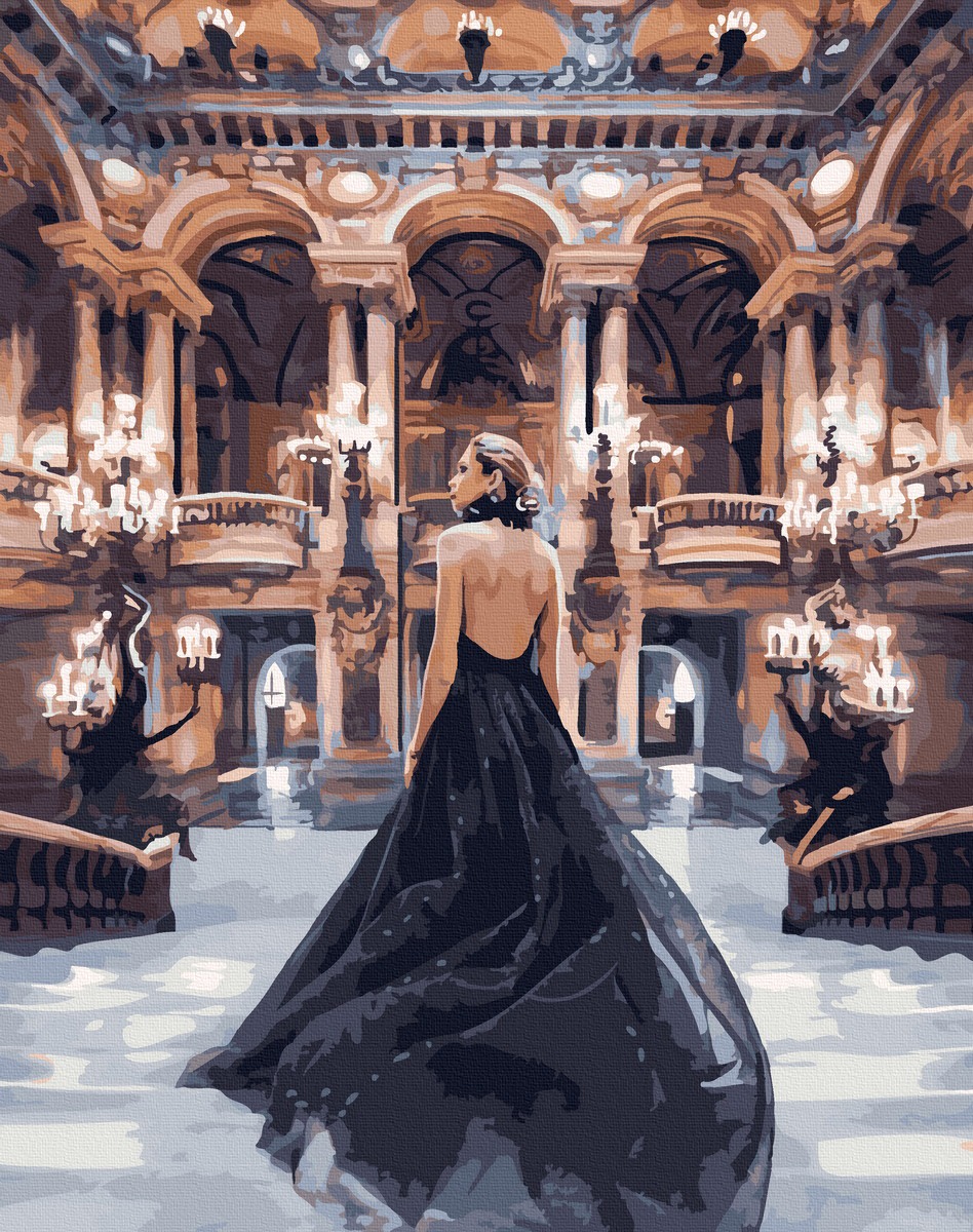 Set Acuarello, Pictura pe numere, Portret Black Dress, cu rama din lemn, pensule si culori acrilice