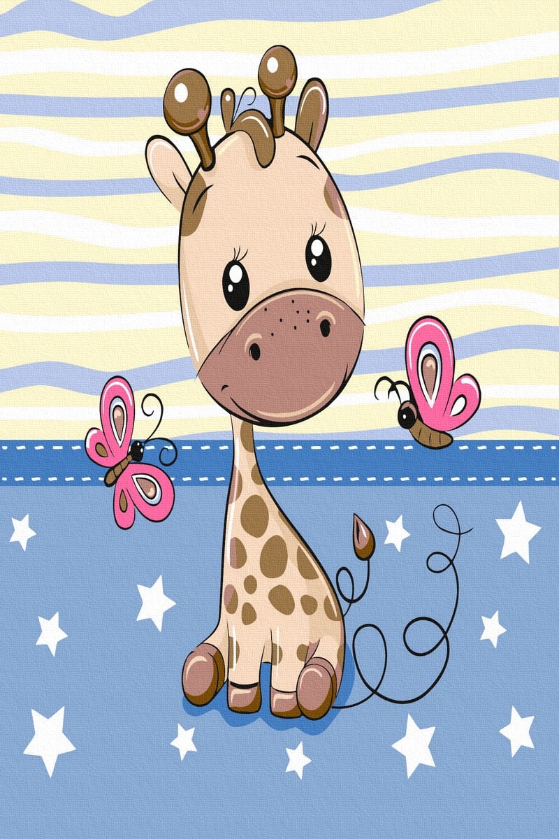 Set Acuarello, Pictura pe numere, Pui de girafa, cu rama din lemn, pensule si culori acrilice