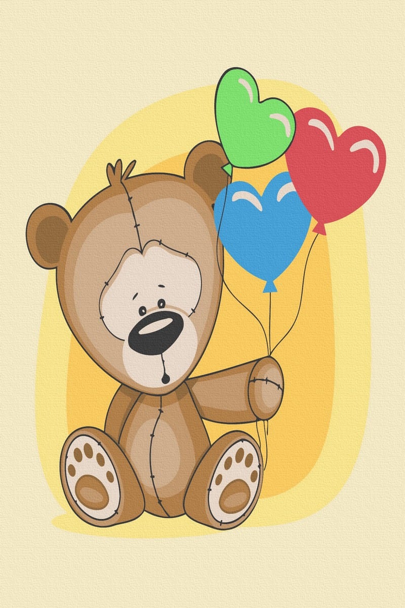 Set Acuarello, Pictura pe numere, Ursuletul cu baloane, cu rama din lemn, pensule si culori acrilice