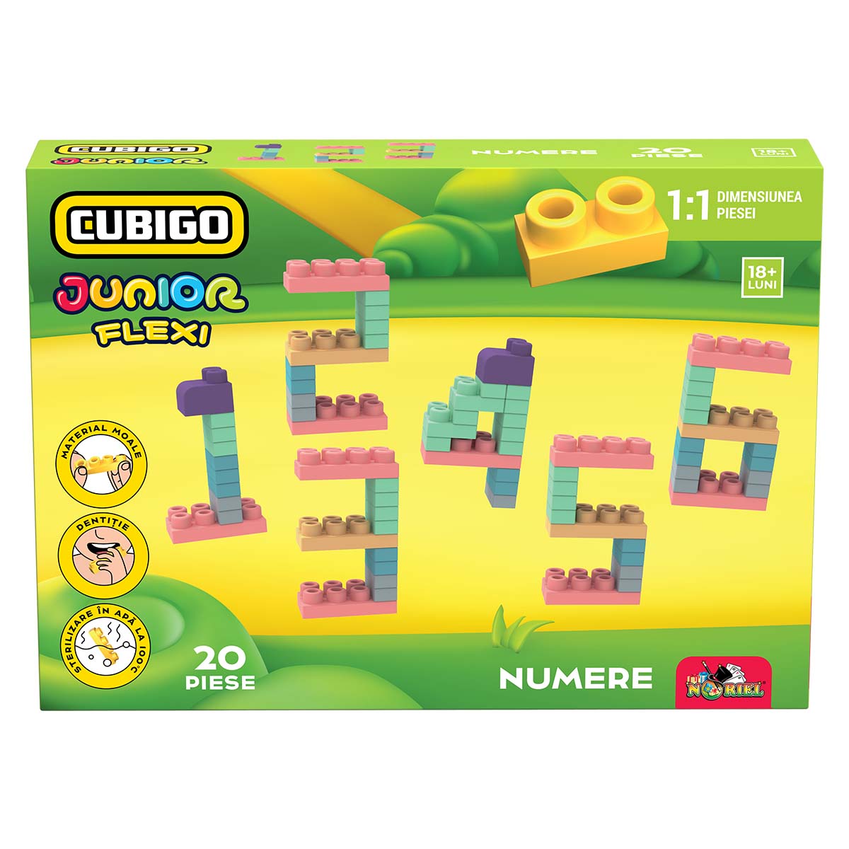 Familiarizeaza-te de mic cu seturile CubiGo, prin intermediul seturilor Cubigo Junior Flexi, care au piese maleabile ce pot fi sterilizate in siguranta prin fierbere. Piesele sunt mai mari decat la seturile pentru varste avansate, astfel incat pot fi cu usurinta apucate de manutele micilor exploratori. Pachetul contine: – 20 x piese maleabile;- 1 x manual de instructiuni. Dimensiuni produs in ambalaj: 28 x 5 x 20 cmVarsta recomandata: 18 luni +