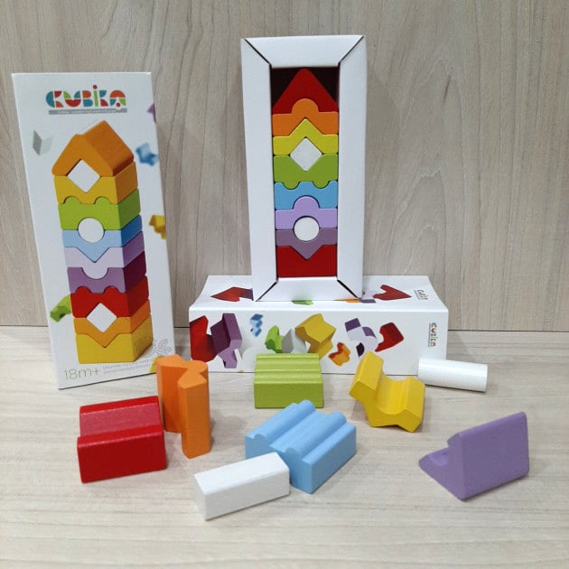 ucariile din lemn au fost intodeauna interesante si sigure pentru copii, acestea contribuind major la dezvoltarea deprinderilor motorii si perceptiei senzoriale a copilului tau.Toate partile componente ale jucariilor Cubika sunt realizate din lemn de cea mai buna calitate, provenit din zonele ecologice ale Carpatilor iar vopselurile utilizate sunt pe baza de apa, nu au miros, sunt foarte rezistente la uzura si sunt 100% sigure pentru utilizatori.Setul de constructii “Turn” este un joc complex ce poate ajuta semnificativ copilul tau in procesul de invatare a culorilor si a formelor, sporindu-i dexteritatea, atentia si simtul echilibrului. Acest tip de joc ajuta copilul sa invete sa potriveasca formele urmand exemplul din ilustratia de pe ambalaj.Distractia este garantata cu aceasta jucarie! Toate piesele acestui joc sunt cu marginile rotunjite, astfel incat copilul dumnevoastra sa se poata juca in siguranta.Caracteristici produs:Materiale: lemn de fag, vopseluri pe baza de apa, non-toxiceNumar piese: 8Dimensiuni produs: 14.5 x 8 x 4.5 cmVarsta recomandata: 18 luni+AVERTISMENT: Indepartati ambalajele inainte de folosinta. Nu lasati copiii nesupravegheati in timpul jocului cu acest produs. Tineti produsul departe de foc.