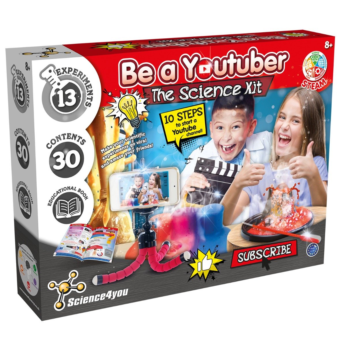 Da-ti frau imaginatiei si creza videoclipuri uimitoare pe care sa le partajezi cu ptietenii tai pe YouTube!Cu acest Kit poti sa: – Creezi un canal YouTube pentru copii pe care il puteti distribui numai prietenilor; – Afli sfaturi despre editarea si interactiunea cu publicul tau; – Descoperi stiinta din spatele celor mai virale experiente, dar si multe altele.. Continut: manual de instructiuni, elemente decorative racheta, valiza de YouTuber, pahar gradat mare si mic, bicarbonat de sodiu, pahar cu capac, ochelari de protectie, cartela de identificare, pipeta Pasteur, mulaj vulcan, manusi de latex, lumanare, baloane, spatula de lemn, spatula de plastic, colorant albastru si rosu, punga cu sistem inchidere fermoar, acid citric, tripod, palnie, paie, minge. Dimensiuni produs in ambalaj: 45 x 34 x 8 cmVarsta recomandata: 8 ani +Atentie! Contraindicat copiilor mai mici de 3 ani. Jucaria poate contine piese mici, care se pot inghiti sau inhala, existand pericolul de sufocare.