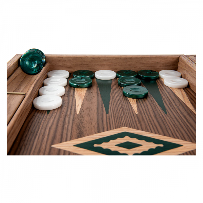 Set joc table backgammon Walnut cu insertii verzi