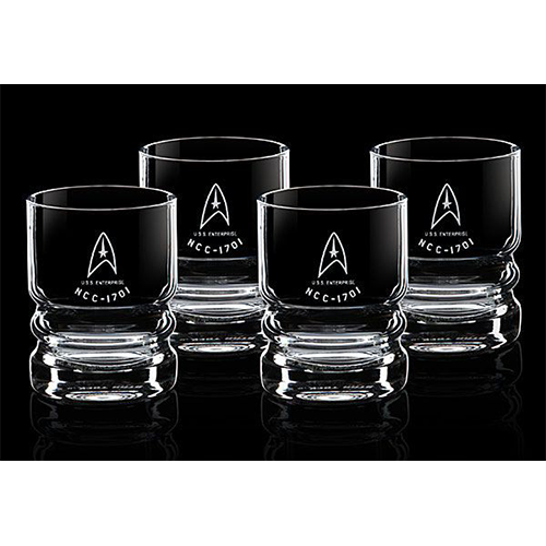 Acest set contine 4 pahare decorate cu elemente din faimoasa serie de televiziune, Star Trek.