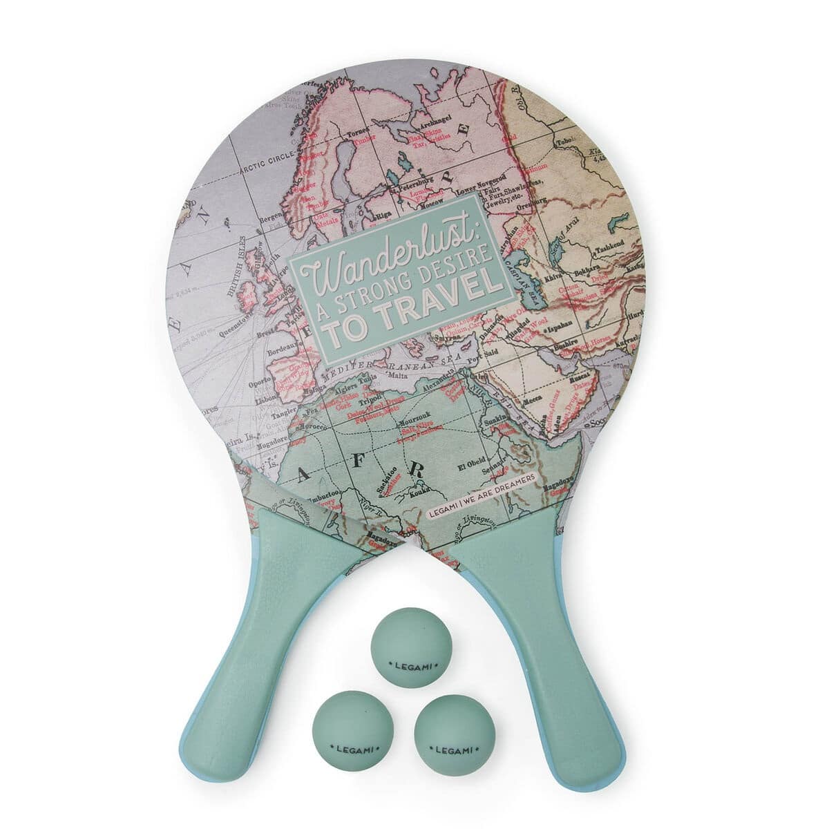 Husa transparenta contine:2 palete cu maner ergonomic;3 bile moi din PVC.In prezent, Legami este un atelier de creatie, cu pasiune pentru inovatie, estetica, materiale calitative si procese de productie excelente. Brandul Legami a aparut in 2003 la Milano si s-a dezvoltat in mod constant in jurul lumii, in cautarea de noi tendinte si idei, pentru a surprinde piata cu oferte originale si exclusiviste, pline de umor si culoare. Legami ofera un echilibru intre emotie si rationament, in timp ce aduce frumusete si tehnologie prin categorii de produse unice.