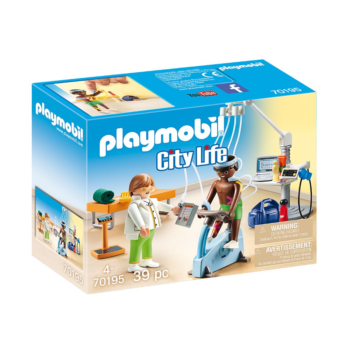 Pacientul trebuie sa mearga la un control astazi, iar un Terapeut fizic de la PLAYMOBIL o sa-l consulte. Prima oara, pacientul se urca pe bicicleta, terapeutul il conecteaza la aparatul EKG si incepe masurarea. In timp ce acesta pedaleaza, terapeutul ii da verdictul: „Exercitiile au succes!”. Se pare ca pacientul este intr-o forma din ce in ce mai buna si in curand o sa iasa din spital. Setul include 2 figurine, o bicicleta, aparate medicale si multe alte accesorii. Dimensiuni articol ambalat: 18.7 x 7.2 x 14.2 cm Varsta recomandata: 4 ani +Avertisment! Contraindicat copiilor mai mici de 3 ani. Jucaria poate contine piese mici, care se pot inghiti sau inhala, existand pericolul de sufocare. Playmobil aduce „o lume in miniatura” in care copiii petrec ore intregi creand sau reproducand povesti, aventuri si situatii din viata reala. Principiul de joc Playmobil stimuleaza imaginatia si creativitatea, promovand dezvoltarea copilului.