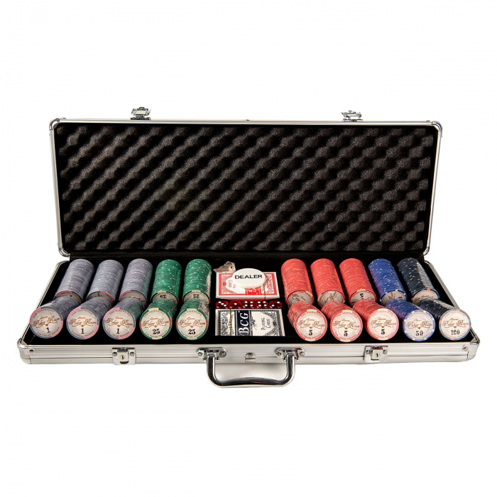 Set poker cu 500 chips-uri ceramice model Valentino si servieta din aluminiu