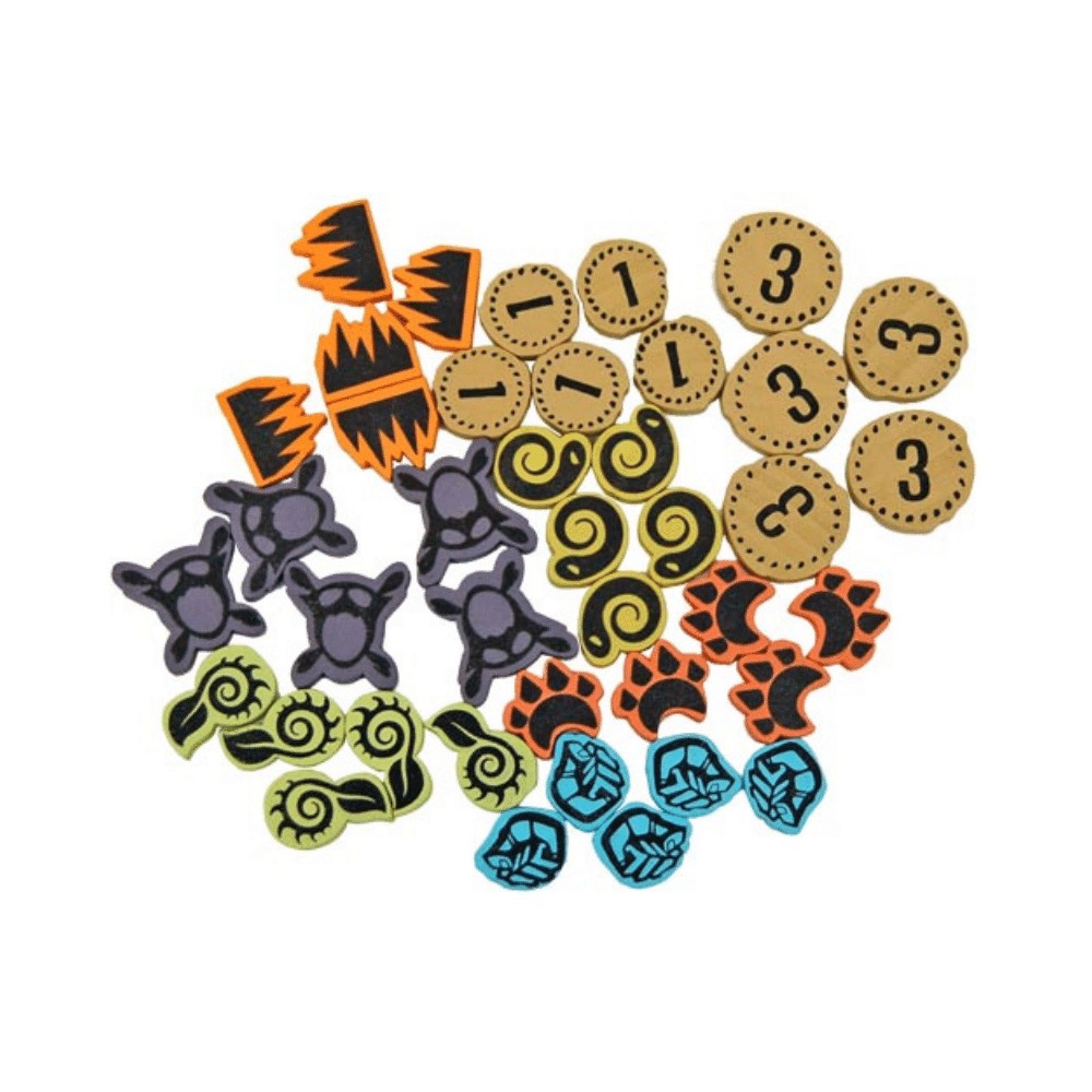 Acest set contine 218 jetoane personalizate din lemn, inclusiv Energy, Fear, Beasts, Wilds, Disease, Strife si chiar noile jetoane Badlands! Setul de jetoane este ambalat intr-o cutie colorata de dimensiunea expansiunii Branch & Claw.