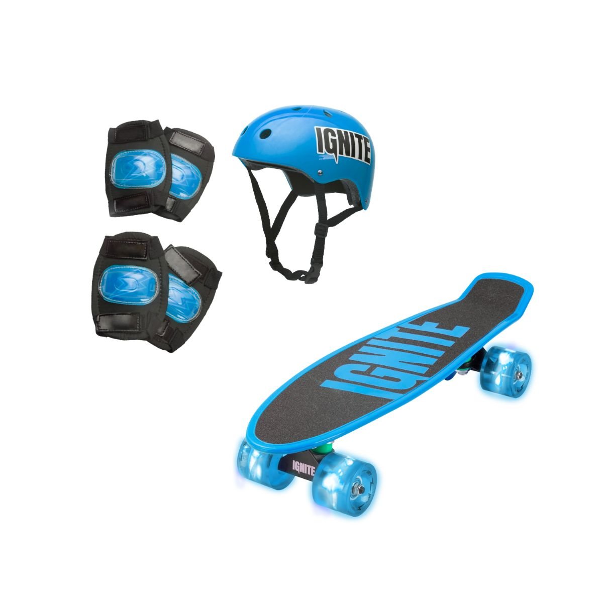 Pachetul contine:- skateboard- casca- cotiere si genunchiere Caracteristici si functii:- sistem de directionare sensibil- suprafata aderenta- usor de ridicat si transportat- roti cu lumini activate prin miscare Dimensiuni produs in ambalaj: 57 x 16 x 21.5 cmGreutate maxima suportata: 50 kgVarsta recomandata: 3 ani +