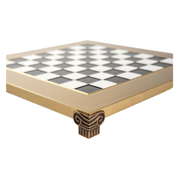 Aceasta frumoasa tabla de sah de la Manopoulos este facuta din bronz cu alama, model spre clasic, avand patratele vopsite in alb si in negru cu chenarul auriu , intreaga tabla fiind lacuita pentru protectie Dimensiuni tabla : 28 x 28 cm Patrat de joc 30 mm Recomandata…
