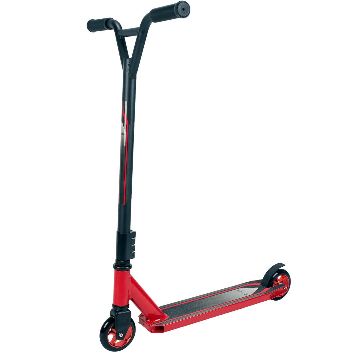 Trotineta Action One Extreme, roti aluminiu Red & Black, conceputa pentru invatarea trick-urilor de skatepark. Trotineta Action One Extreme este un tip de trotineta freestyle, ale carei caracteristici sunt: ghidonul mare ce permite rasucirea in aer la 360 de grade, roti mici usor de controlat, cu structura de aluminiu 100mm high impact PU si rulmenti ABEC 7 high speed metal. Este o trotineta rigida si rezistenta, cu o greutate mai mica decat a unei trotinete normale, fapt ce o face mai usor de manevrat. Caracteristici:- Material: Aluminiu + ranforsare de otel a ghidonului;- Ghidon cu sistem de rotire 360 grade si inaltime fixa care asigura stabilitate maxima si siguranta in timpul salturilor;- Roata 100 mm din PU;- Rulmenti ABEC-7;- Dimensiune platforma: 48×10 cm;- Greutate maxim admisa: 80 kg. Dimensiuni produs in ambalaj: 65 x 13 x 47 cmGreutate produs: 4 kgVarsta recomandata: 10 ani +