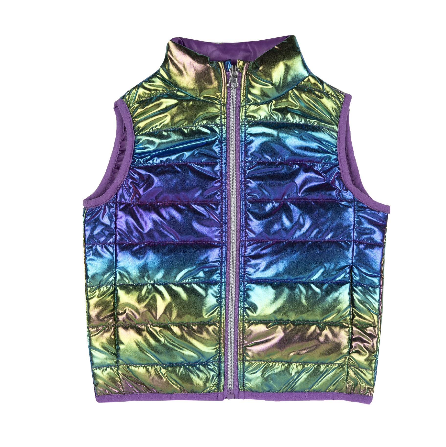 Vesta impermeabila, metalizata, matlasata cu inchidere in fata, cu fermoar confectionata din materiale de calitate, reciclate, poarta etichetele: Sorona Aura – materiale de calitate, calduroase si foarte confortabile, Sustainable Parenting si este realizata din 100% poliester.