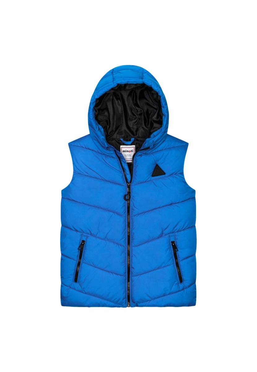 Vesta cu gluga, inchidere cu fermoar, buzunare si detaliu frontal, albastru. Material: 100% poliester
