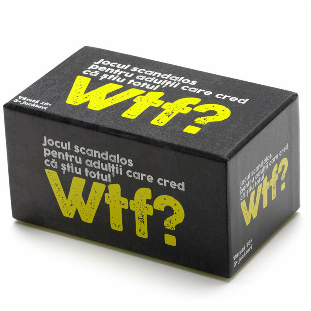 WTF? este un joc rapid, intreaba si raspunde, cacealma si mistouri pentru jucatorii open-minded. In acest joc voi decideti raspunsurile! Raspundeti repede si, daca nu stiti raspunsul, incercati sa-i convingeti pe ceilalti sa raspunda!