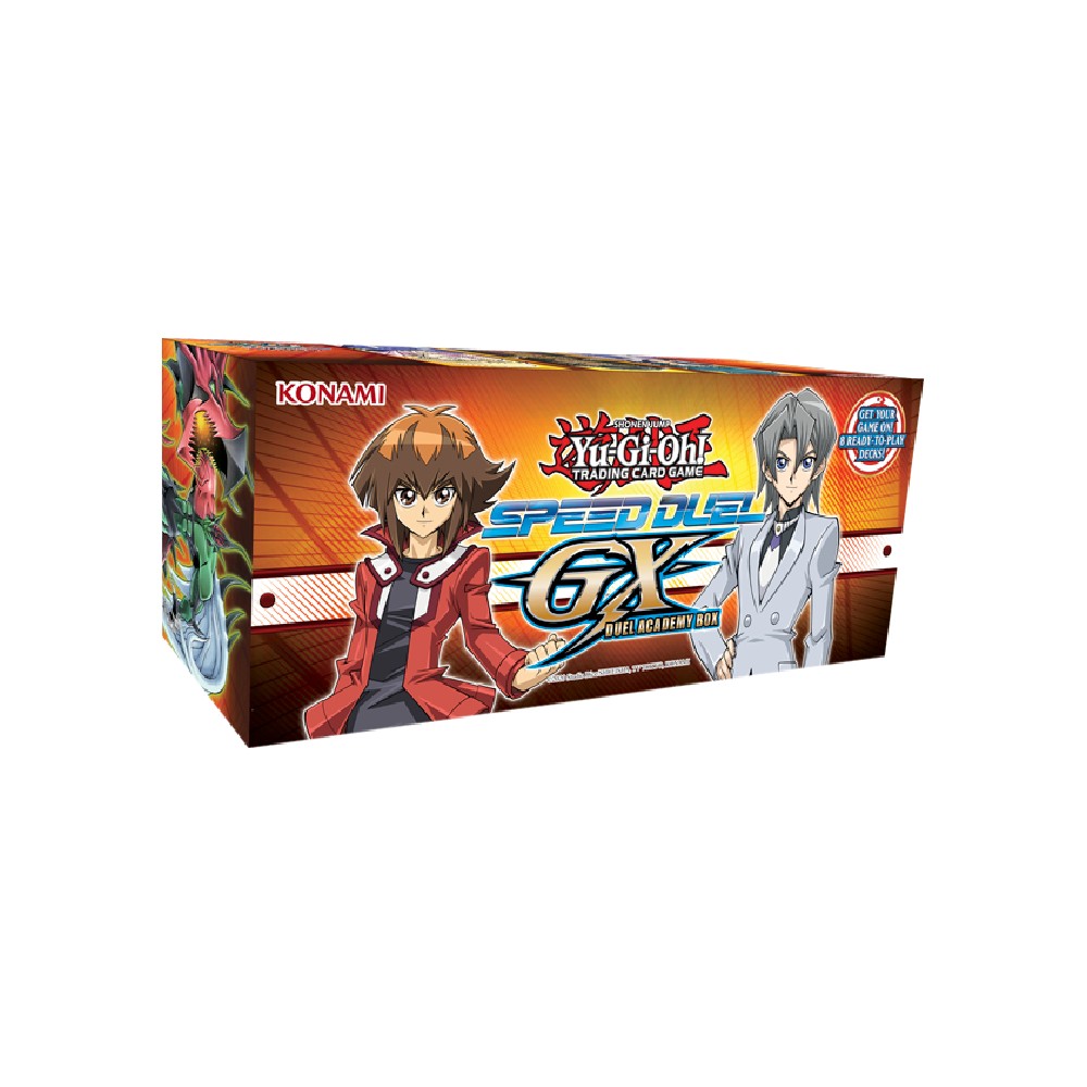 Pregatiti-va sa incepeti jocul cu noul Speed Duel GX: Duel Academy Box! La fel ca popularul Speed Duel: Battle City Box, si acesta este conceput pentru a permite pana la 8 jucatori sa participe la experienta dinamica de turneu si include un grup static d