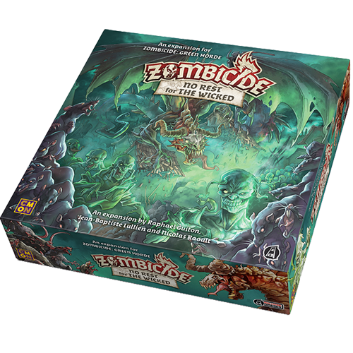 Inamicii devin din ce in ce mai puternici si mai variati. Magia neagra corupe totul, iar zombii sunt aproape nemuritori. Mai mult, necromantii fac si ei probleme. Zombicide Green Horde: No Rest For The Wicked este o extensie si necesita jocul de baza Zom